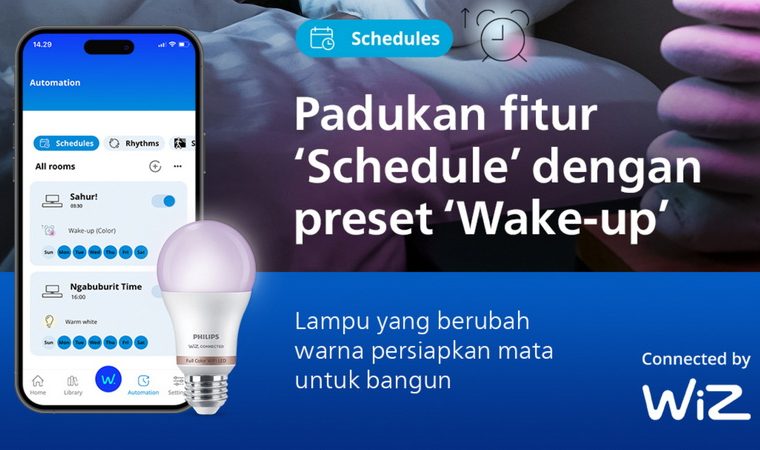 Selama bulan Ramadan, rutinitas keluarga di rumah berubah—mulai dari bangun sahur lebih awal, berbuka bersama, hingga beribadah larut malam. Untuk mendukung aktivitas tersebut, Philips Smart LED Connected by WiZ hadir dengan fitur Schedules yang memungkinkan lampu menyala, mati, atau berganti warna secara otomatis sesuai jadwal. Dengan teknologi ini, suasana rumah bisa lebih nyaman tanpa perlu pengaturan manual setiap hari.