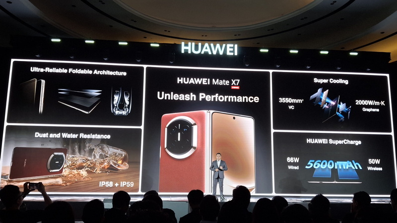 Untuk mendukung aktivitas tanpa jeda, Mate X7 dibekali baterai 5600mAh silikon-karbon dengan dukungan 66W wired dan 50W wireless super charge. Sistem pendinginan Supercool Ultra-Large VC dengan Graphene Heat Dissipation menjaga suhu tetap stabil saat multitasking intensif.