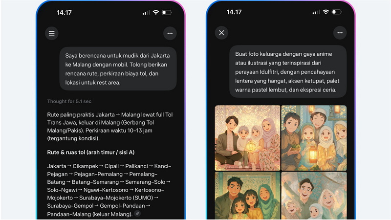 Dengan lima tips ini, pengguna bisa menghadirkan sentuhan kreatif ala profesional di setiap momen Ramadan dan Idulfitri. Semua fitur Meta AI tersedia langsung di aplikasi yang sudah digunakan masyarakat Indonesia, sehingga tidak perlu mengunduh aplikasi tambahan.