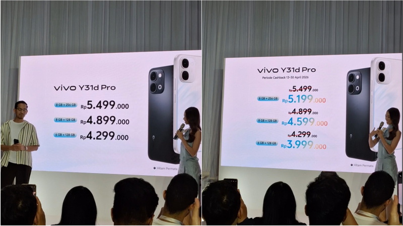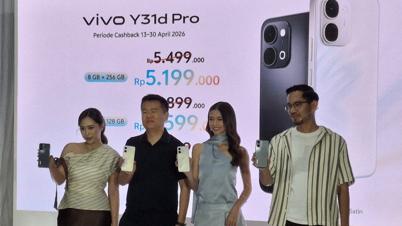 Dari sisi harga, vivo Y31d Pro diposisikan sebagai smartphone mid-range dengan value tinggi di kelasnya. Perangkat ini hadir dalam tiga varian memori, yaitu 6GB+128GB yang dibanderol sekitar Rp4.299.000, varian 8GB+128GB di kisaran Rp4.899.000, serta varian tertinggi 8GB+256GB dengan harga Rp5.499.000.
