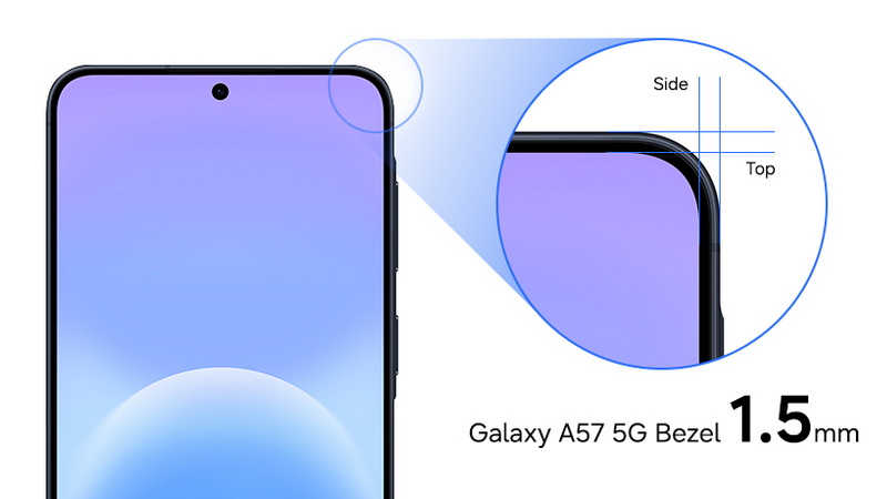 Galaxy A57 5G tampil lebih ramping dengan ketebalan hanya 6,9 mm dan bobot 179 gram. Bezel layar juga lebih tipis, memberikan pengalaman visual yang imersif. Pilihan warna stylish tersedia, seperti Awesome Navy, Awesome Gray, Awesome Icyblue, dan Awesome Lilac untuk A57 5G, serta Awesome Lavender, Awesome Charcoal, Awesome Graygreen, dan Awesome White untuk A37 5G.