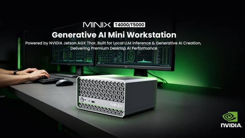 MINIX T4000/T5000 hadir dengan Ubuntu 24.04 LTS + NVIDIA JetPack 7.1, mendukung CUDA, TensorRT, dan NIM. Semua data diproses secara lokal untuk menjaga keamanan dan privasi, menjadikannya solusi ideal bagi perusahaan maupun kreator independen.