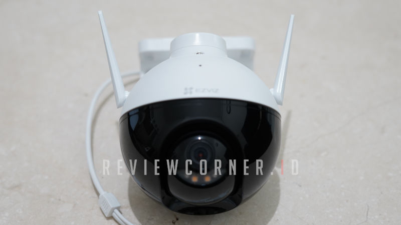 EZVIZ C8C memiliki koneksi wireless. Oleh karena itu, terdapat dua buah antena eksternal di sisi kiri dan kanan lensa kamera.