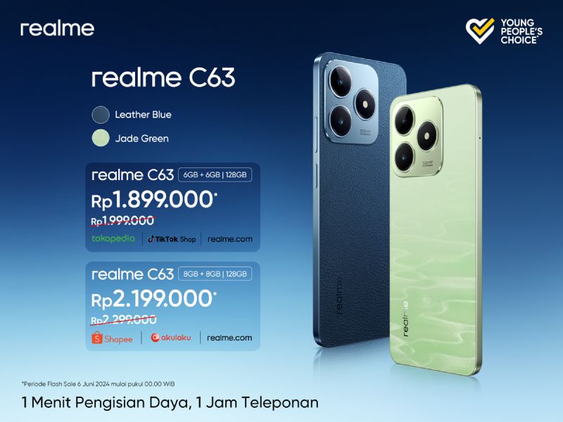 “Sebagai generasi terbaru di lini realme C Series, Realme C63 hadir mendobrak batasan dengan mengusung pengisian daya tercepat 45 Watt di harga sejutaan, yang umumnya didominasi pengisian daya hanya 18 Watt. Smartphone ini kami hadirkan untuk menjawab kebutuhan para pengguna yang membutuhkan smartphone yang dapat selalu aktif, dilengkapi dengan desain mewah kelas flagship berbahan kulit, yang membedakan smartphone ini dengan kompetitor lain di segmen harganya,” tutur Ellen Zhou, Marketing Director realme Indonesia.