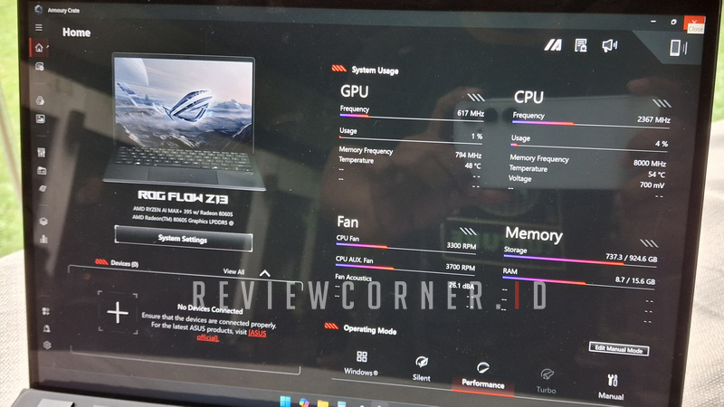 ASUS juga merancang agar suhu tidak berimbas pada layar dengan mengalirkan udara panas melalui saluran khusus yang terdapat di belakang layar. Selain itu, filter debu terintegrasi menjaga sistem pendingin tetap bersih dan andal dalam jangka panjang.
