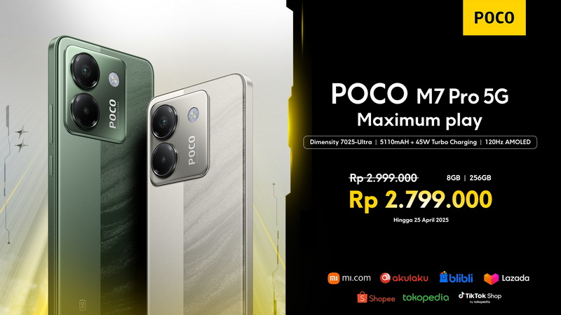 Xiaomi Indonesia resmi mengumumkan kehadiran POCO M7 Pro 5G di Indonesia. POCO M7 Pro 5G dipersenjatai dengan chipset MediaTek Dimensity 7025-Ultra.