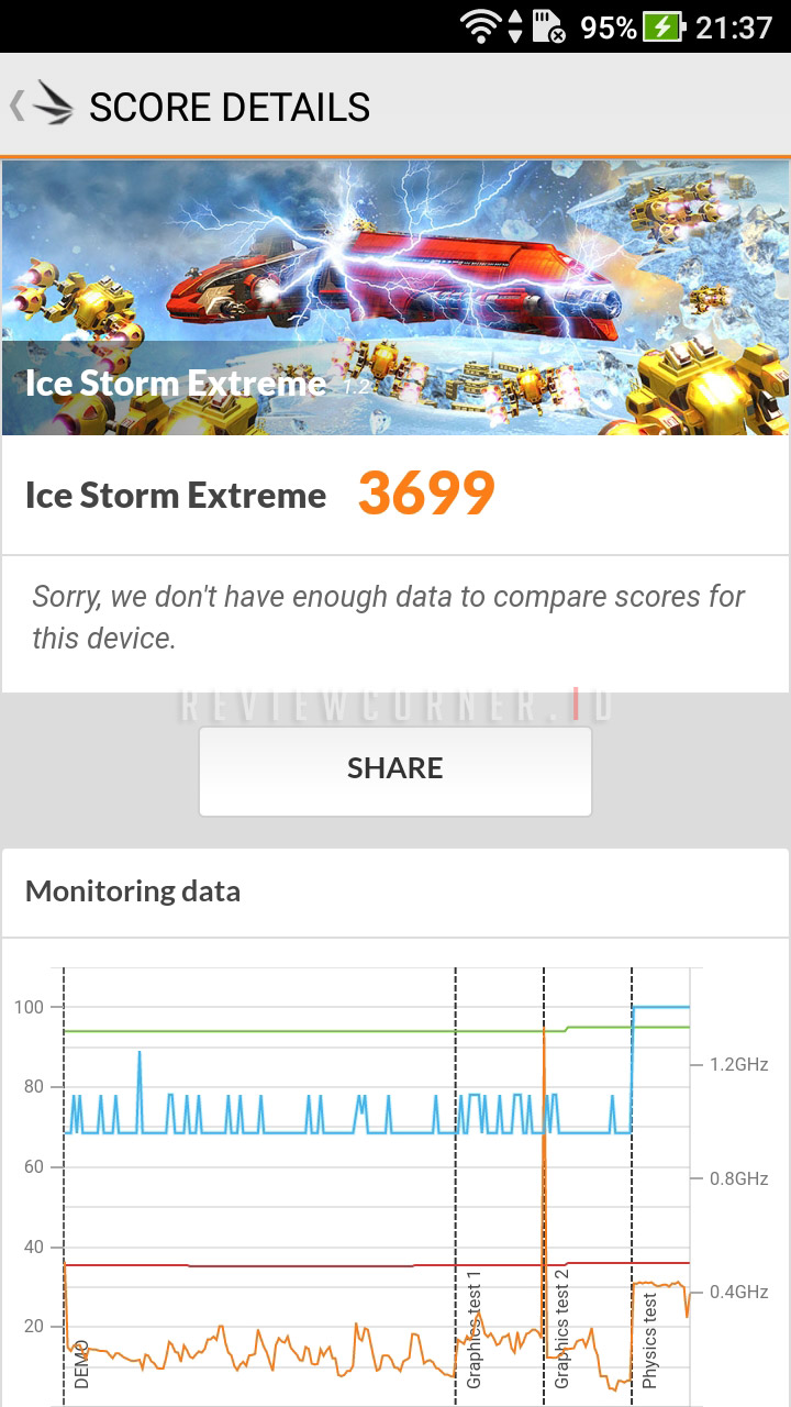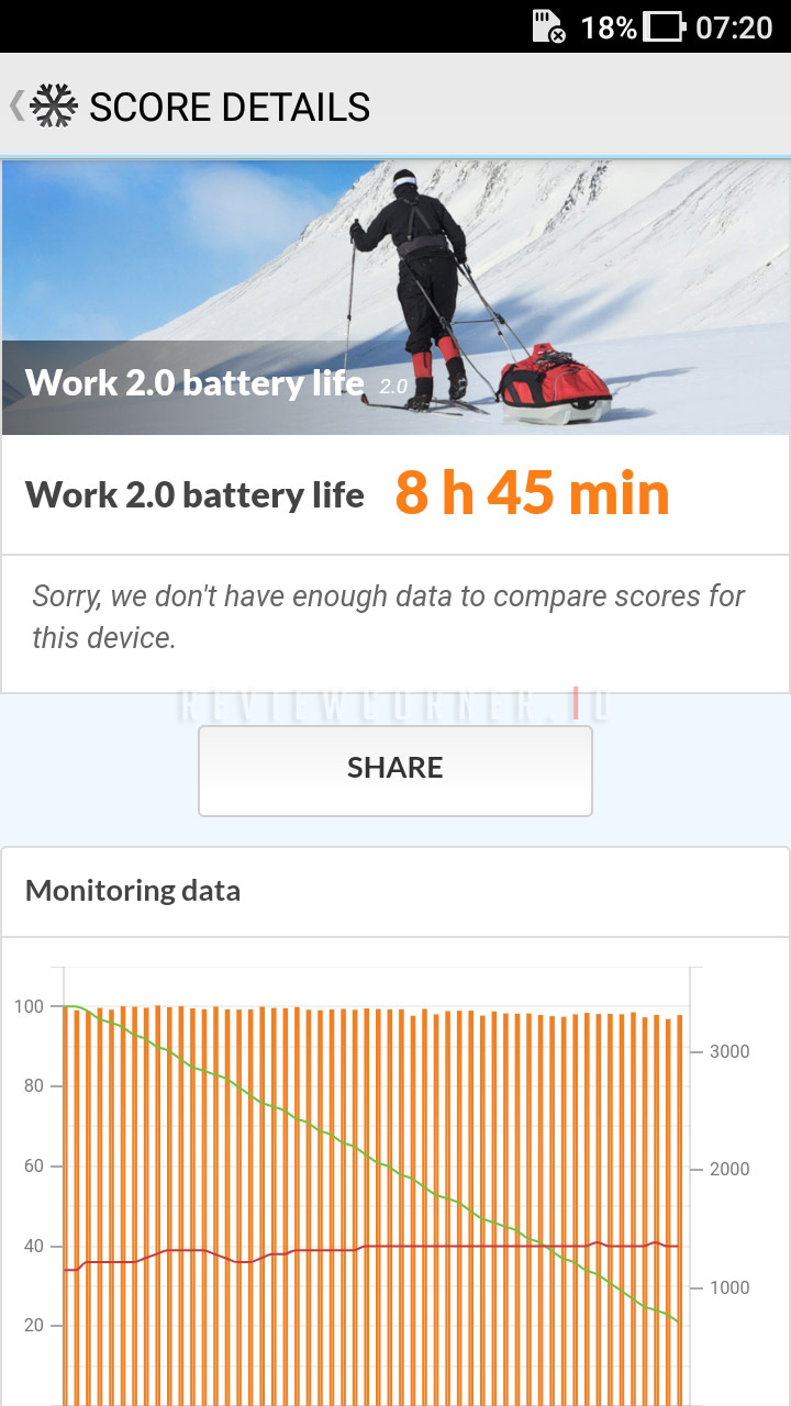 Kapasitas baterai yang besar membuat smartphone ini dapat bertahan hingga sekitar hampir 9 jam saat saya coba menggunakan PCMark. Daya tahan segitu tak bisa dibilang irit untuk kapasitas baterai sebesar itu. Menurut saya, penggunaan prosesor quad core membuat smartphone ini harus lebih sering bekerja pada kecepatan penuh sehingga mengurangi efisiensinya yang berefek pada konsumsi dayanya yang menjadi lebih boros.