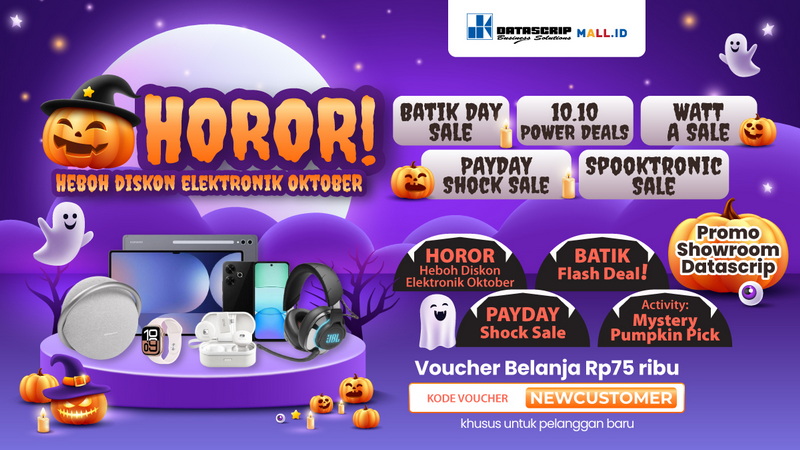 Menyambut Oktober yang identik dengan semangat Halloween, DatascripMall.ID menghadirkan kampanye HOROR (Heboh Diskon Elektronik Oktober) dengan diskon hingga 90% dan harga mulai Rp1.000. Pelanggan dapat menikmati pengalaman belanja elektronik lebih hemat, seru, dan penuh kejutan…